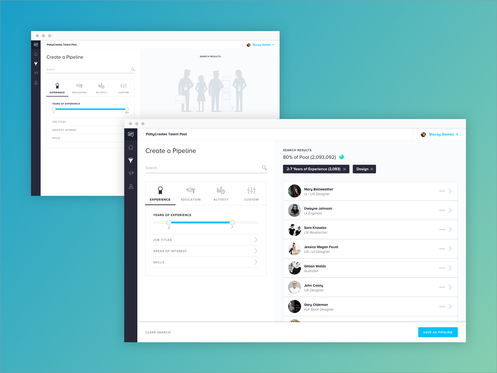 - Redesign core flows like pipelines, candidate profiles, and filtering